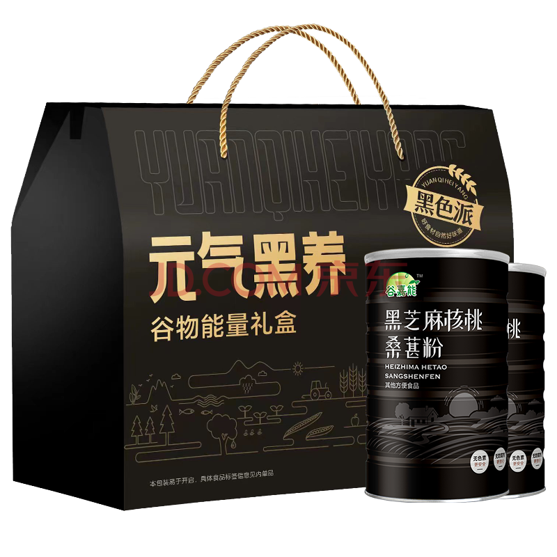 商品名称:谷嘉能无蔗糖黑芝麻核桃桑葚粉600g*2罐年货节送礼物送父母长辈礼盒装