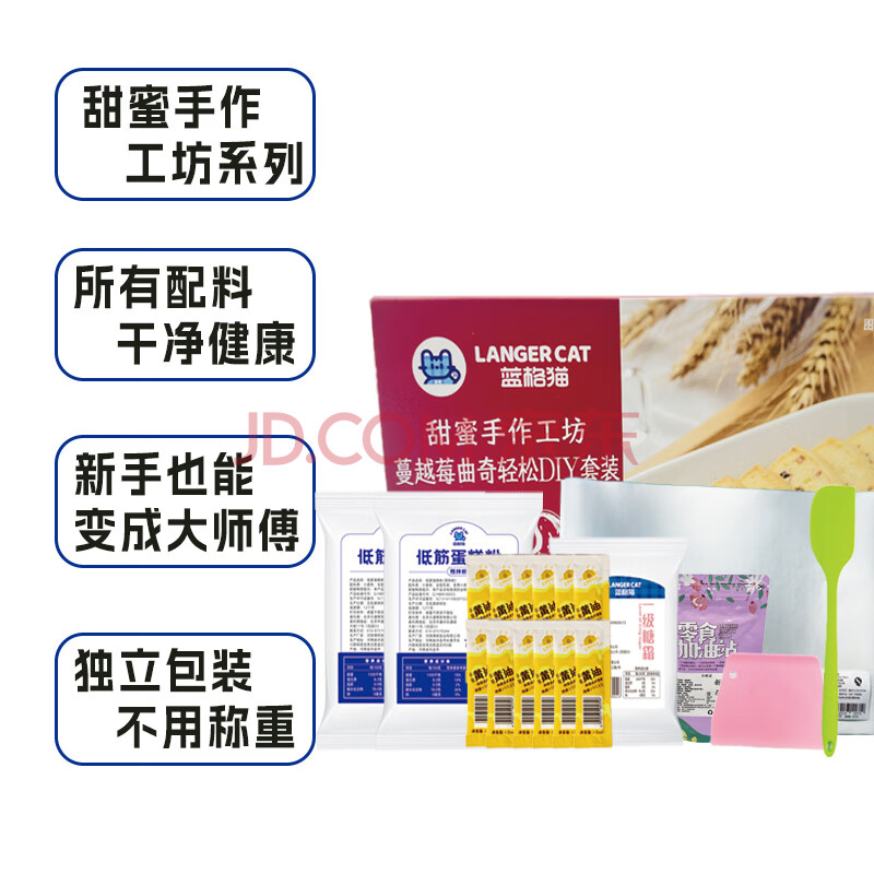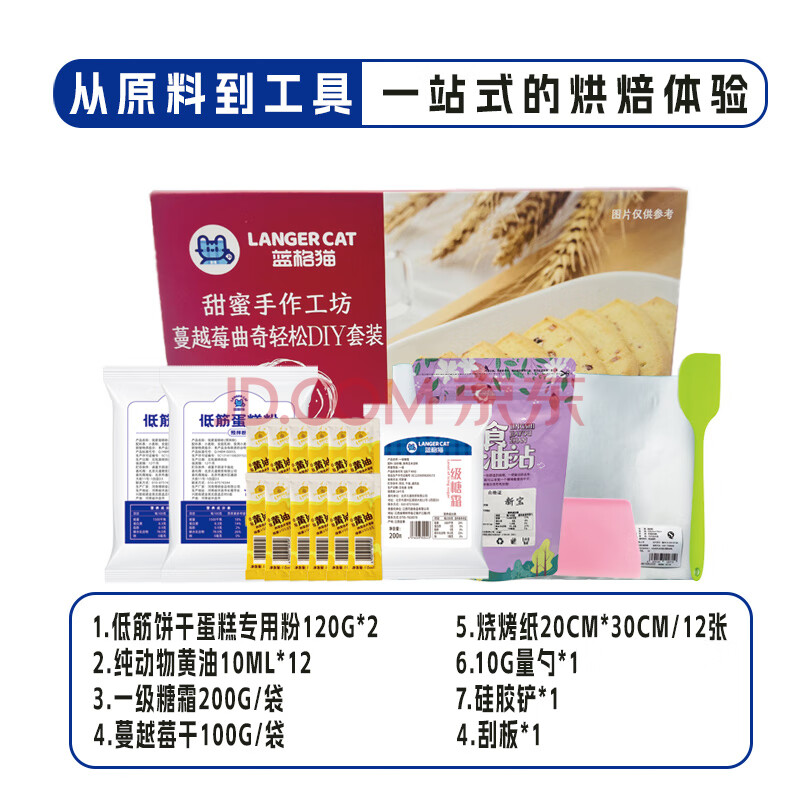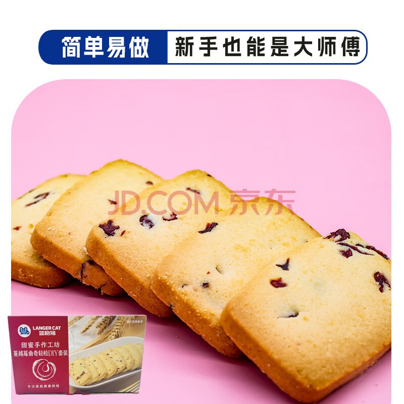 商品名称:蓝格猫 蔓越莓黄油曲奇DIY套装饼干材料预拌粉家庭自制手工烘焙原料600g