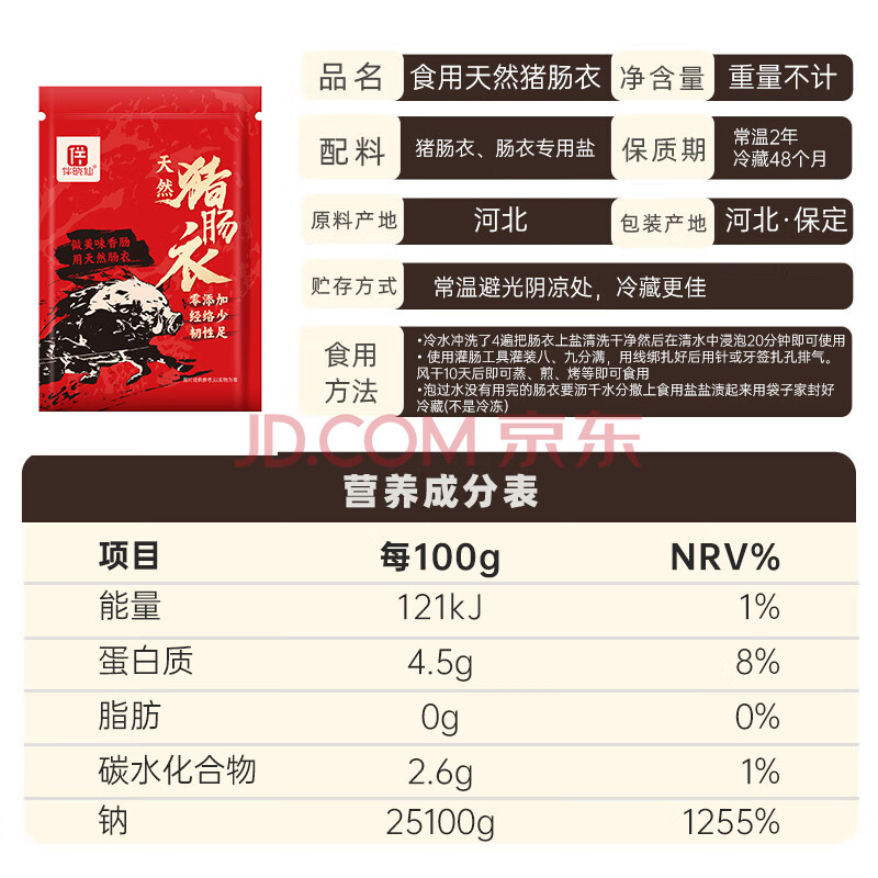 商品名称:伴晓仙盐渍猪肠衣 无添加灌香肠家用肠衣可灌10斤左右肉香肠腊肠烤肠衣