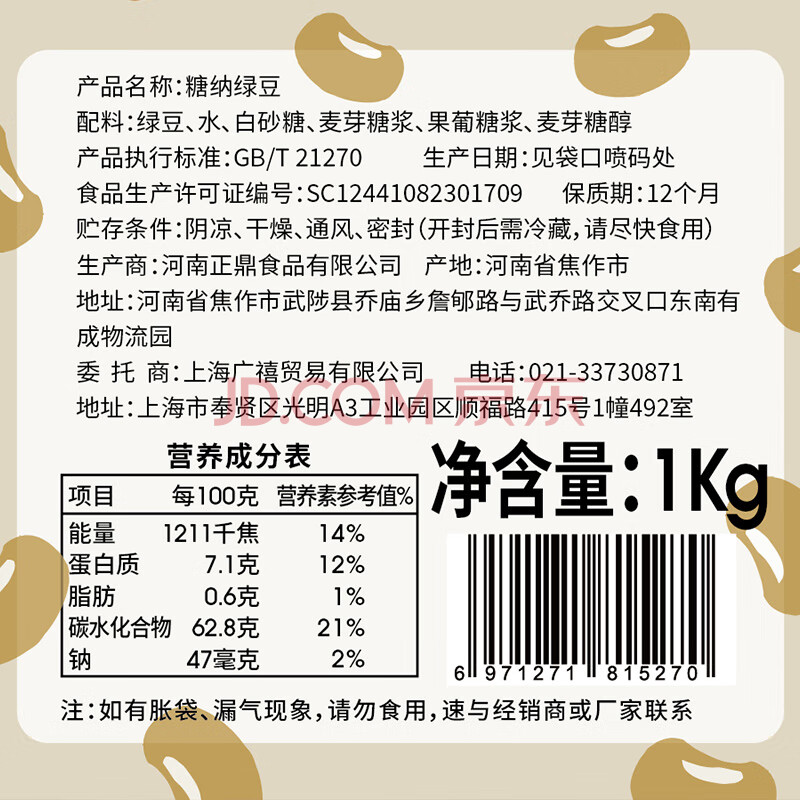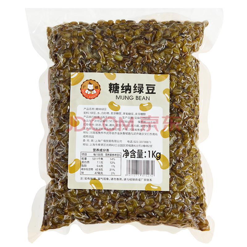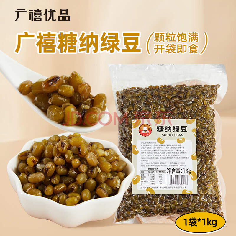 商品名称:广禧优品糖纳绿豆1kg 即食熟绿豆糖蜜豆奶茶甜品烘焙原料专用