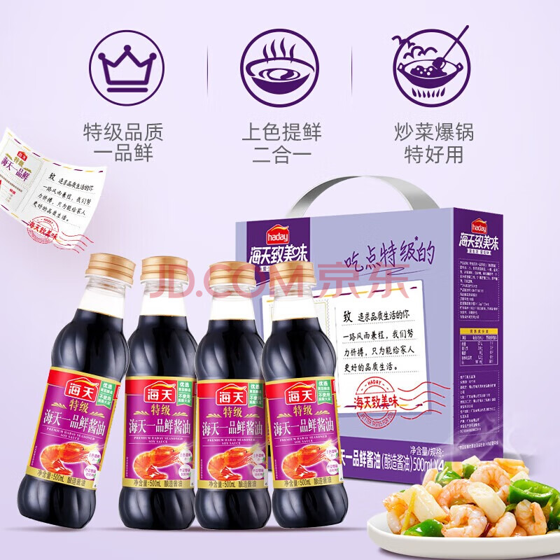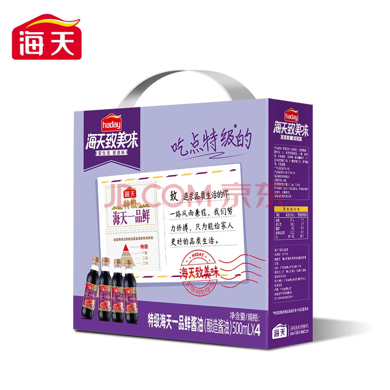 商品名称:海天 礼盒系列 一品鲜生抽酱油500ml*4【特级酱油】 包装随机