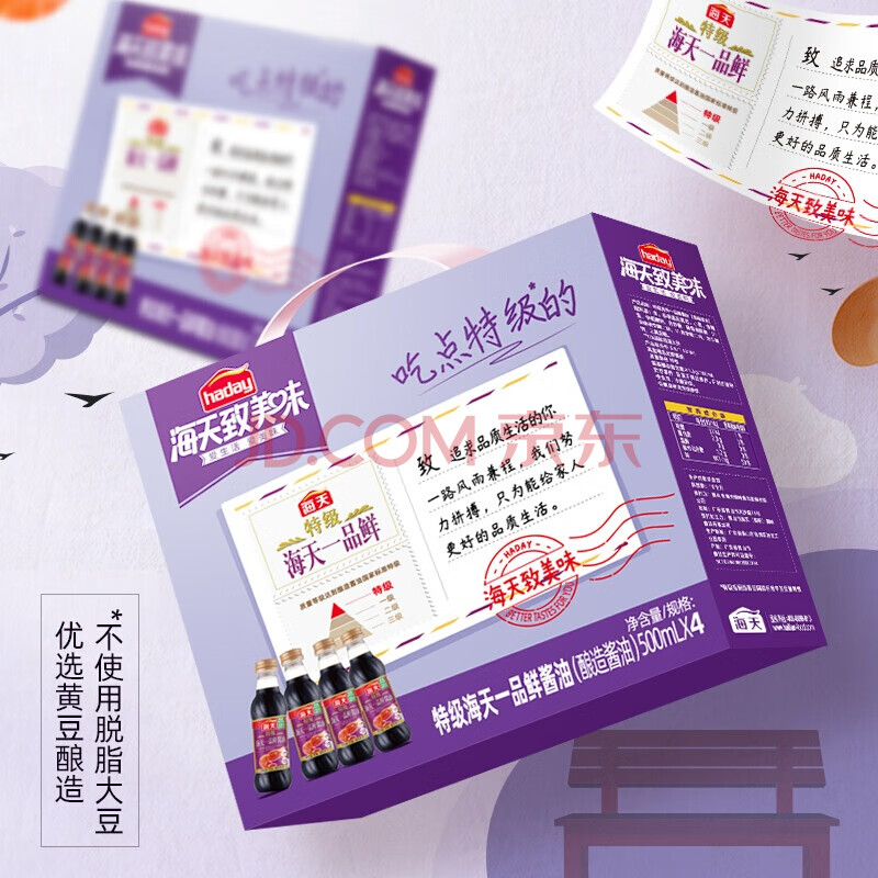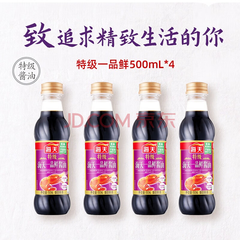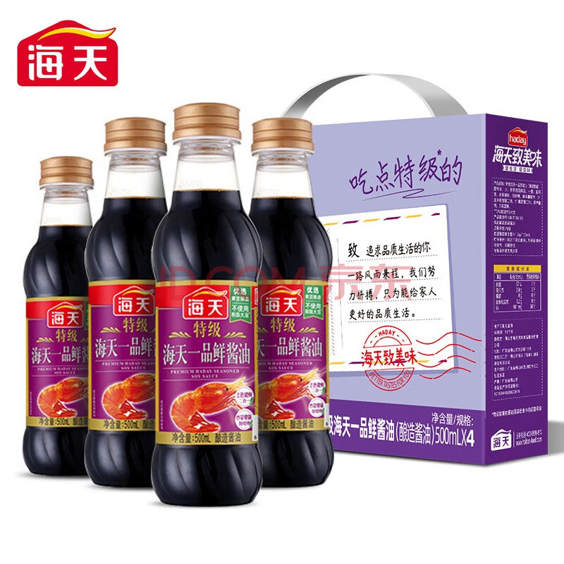 > 海天 礼盒系列 一品鲜生抽酱油500ml*4【特级酱油】 包装随机