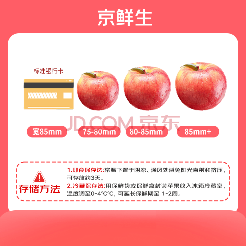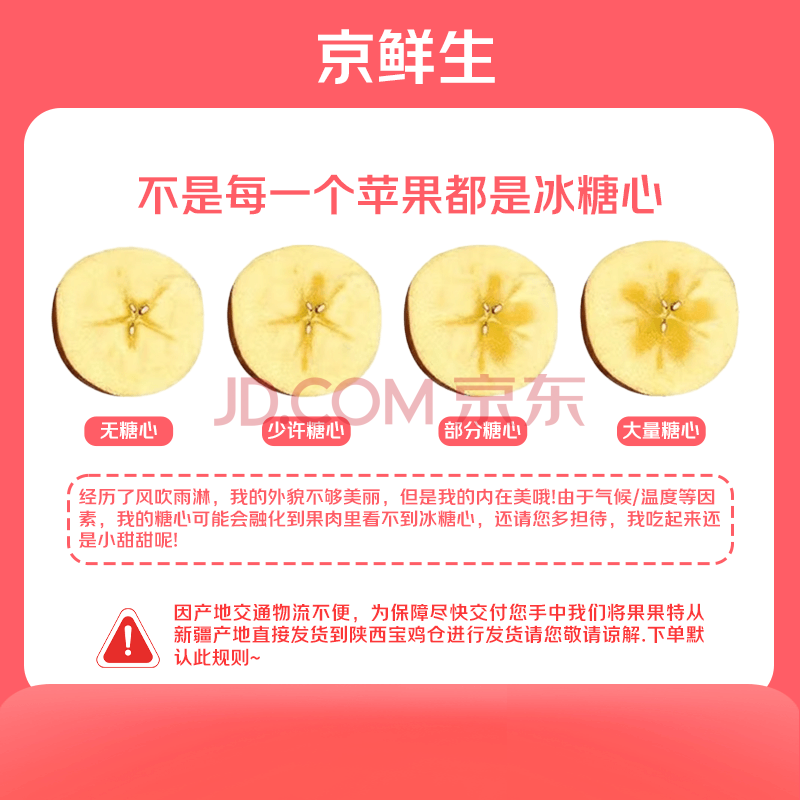 商品名称:京鲜生 甘肃大漠冰糖心苹果 净重4.5斤 单果85+mm 源头直发包邮