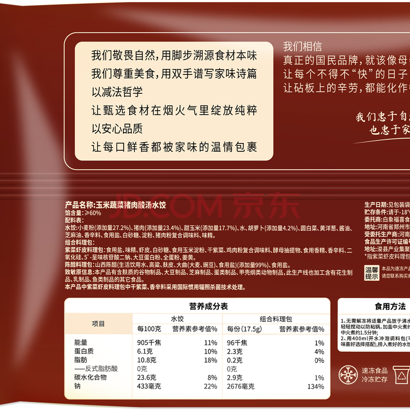 商品名称:白象玉米蔬菜猪肉水饺 生鲜健康早餐半成品 速食速冻食蒸饺子600g30只