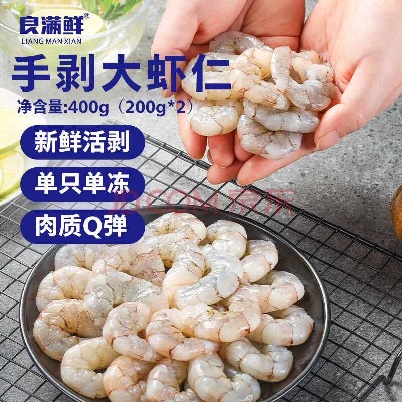 商品名称:良满鲜生冻特大号手剥虾仁 无保水剂无冰净重400g(200g*2)低脂高蛋白