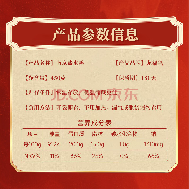 商品名称:龙福兴江苏南京特产盐水鸭450g开袋即食卤味熟食咸水鸭送礼礼品