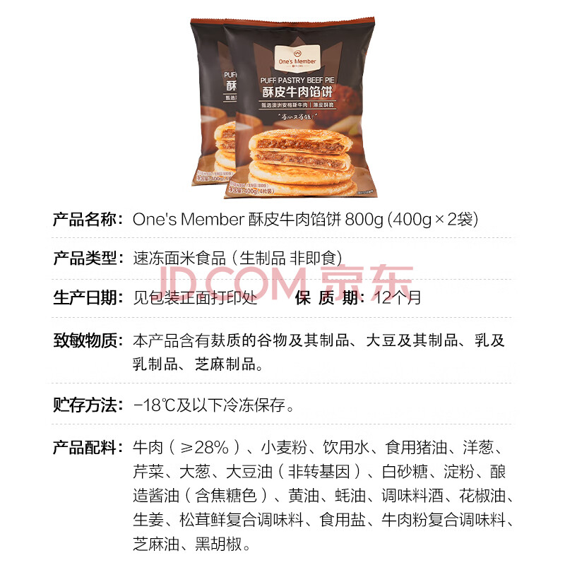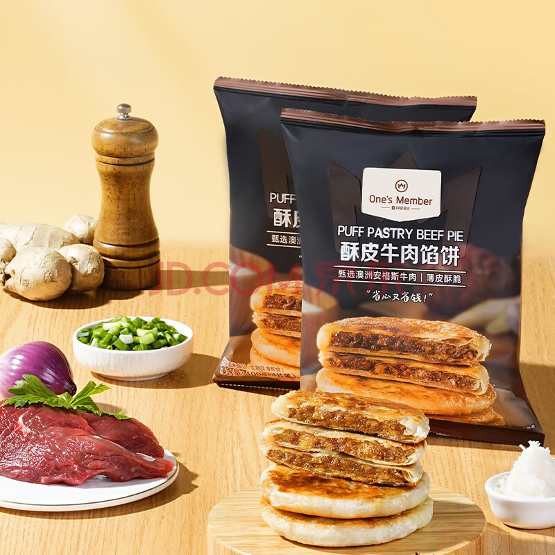 商品名称:1号会员店酥皮牛肉馅饼800g(400g*2袋) 营养快手早餐半成品冷冻懒人煎饼