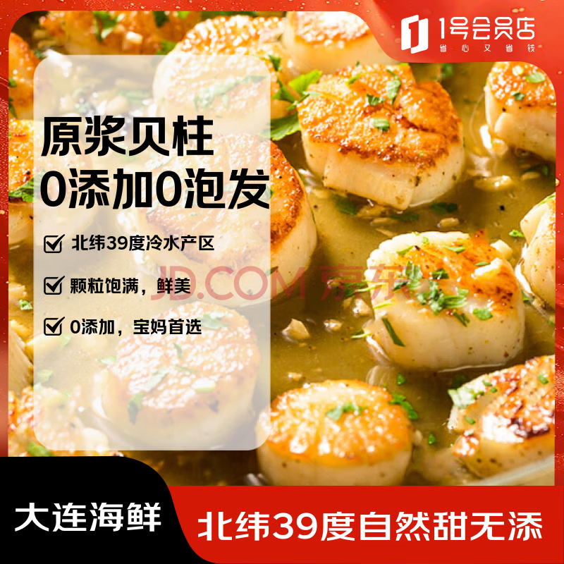 > 福字号冷冻原浆扇贝柱新鲜帆立贝柱1000g大号40/60规格零添加保水剂海鲜