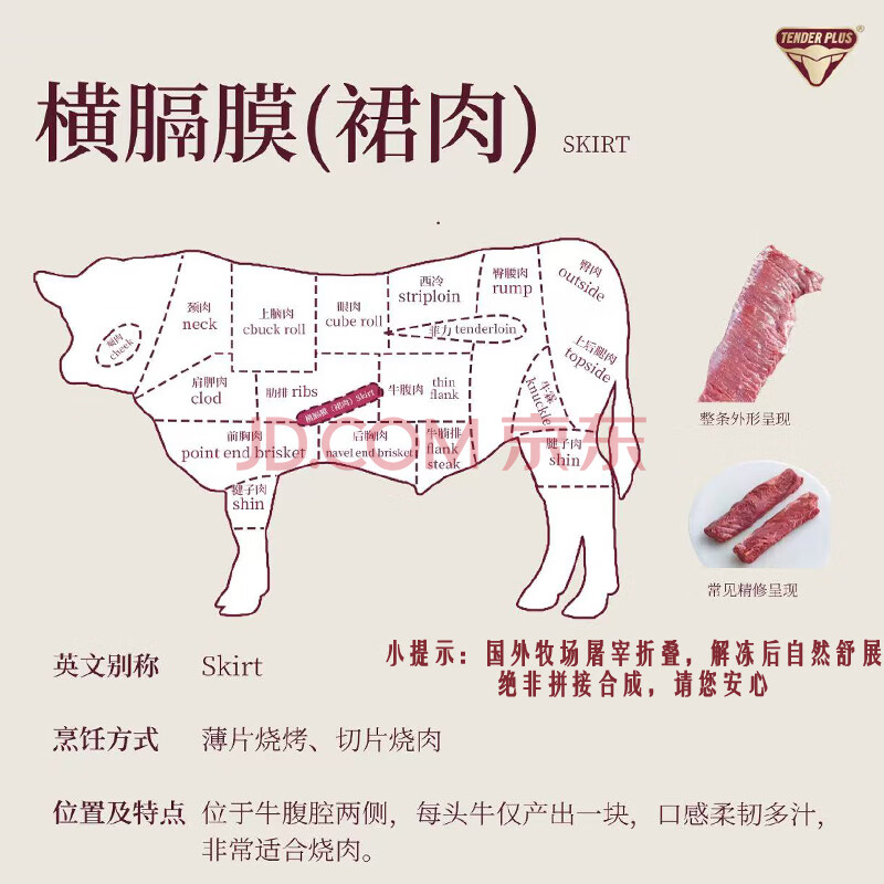 商品名称:天谱乐食 澳洲M5和牛内裙牛排原切净重200g 原切横膈膜油边烧烤牛肉食材