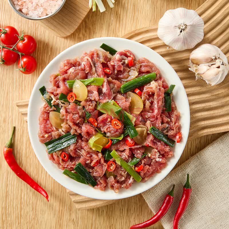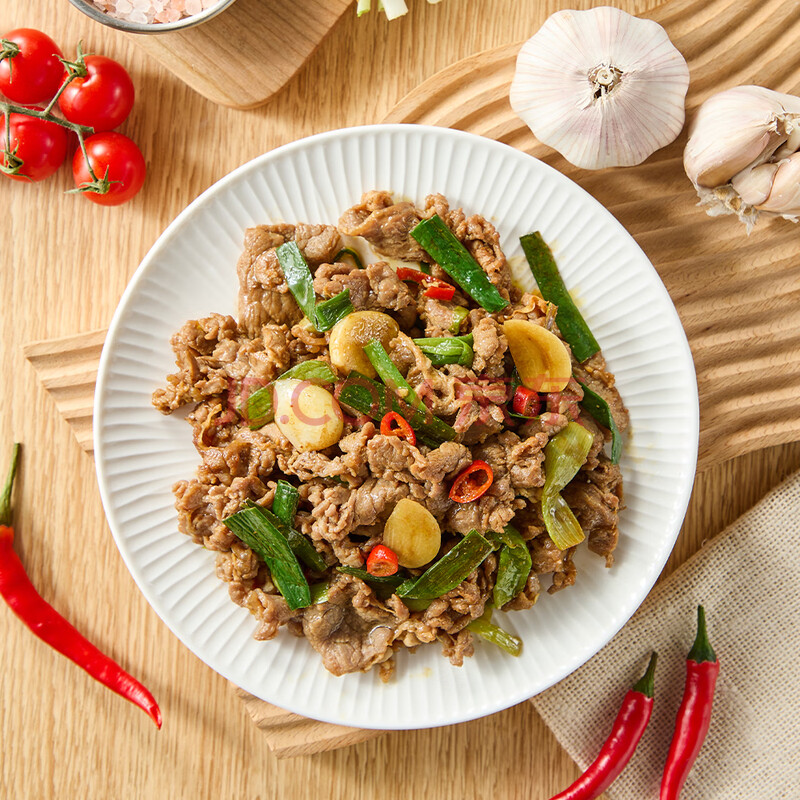 商品名称:富杰嫩牛肉片配青蒜450g 3袋 生鲜小炒黄牛肉火锅烧烤食材蒜预制菜