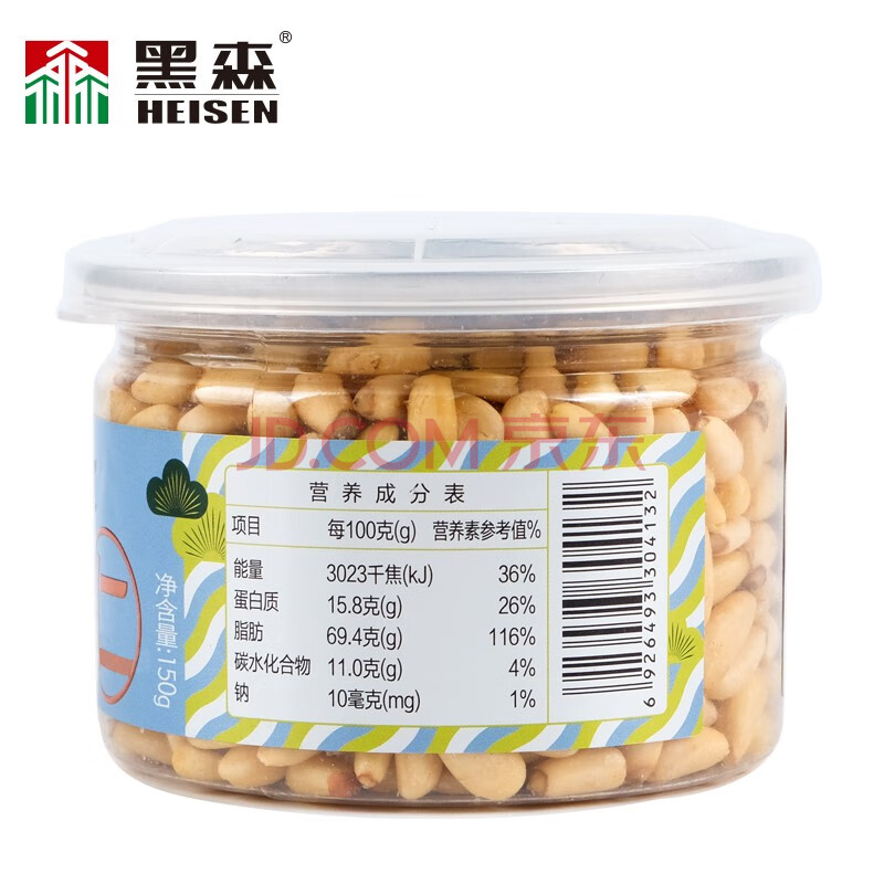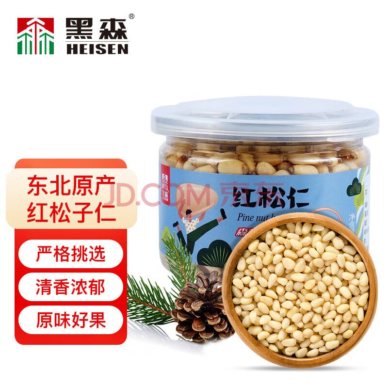 商品名称:黑森 东北野生红松子仁150g罐装东北特产松仁休闲坚果零食粒粒饱满