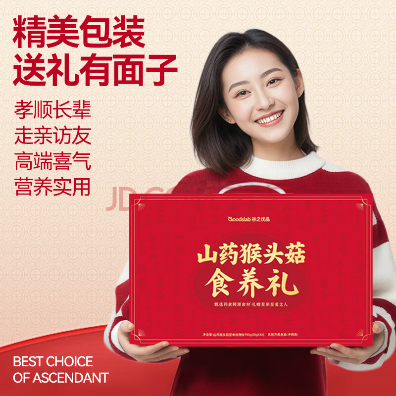 商品名称:谷之优品山药猴头菇谷物粉礼盒老年人营养品早餐冲饮便携装礼盒送长辈750g