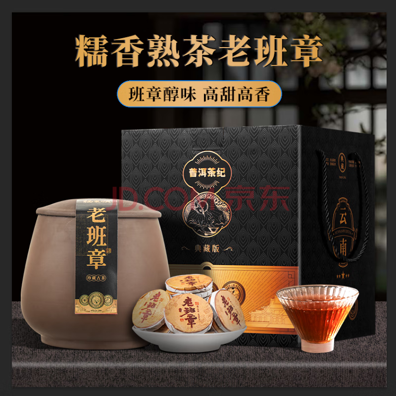 > 福东顺 茶叶 老班章普洱茶熟茶陶瓷罐装500g云南古树茶小茶饼送礼佳品