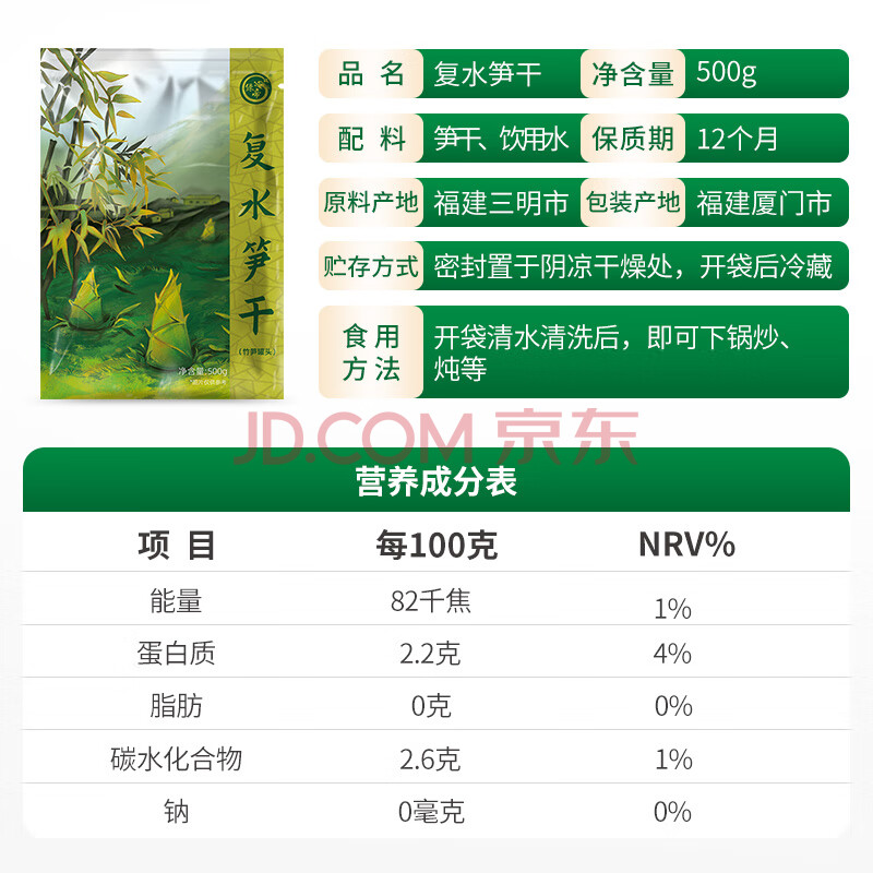 商品名称:绿帝(GREEN KING)复水笋干500g 免泡幼嫩竹笋 鲜嫩爽脆 煲汤凉拌炒菜食材