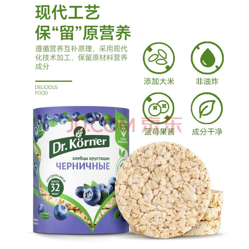 商品名称:DR.KORNER康纳博士谷物脆米饼 蓝莓味100g 俄罗斯进口 非油炸健身饱腹代餐