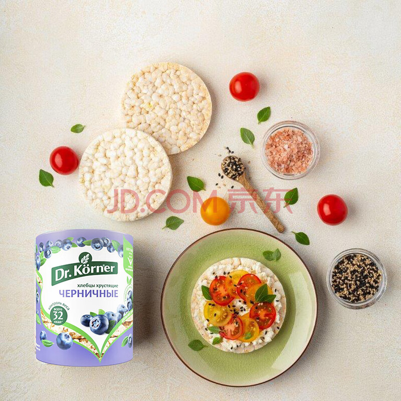 > DR.KORNER康纳博士谷物脆米饼 蓝莓味100g 俄罗斯进口 非油炸健身饱腹代餐