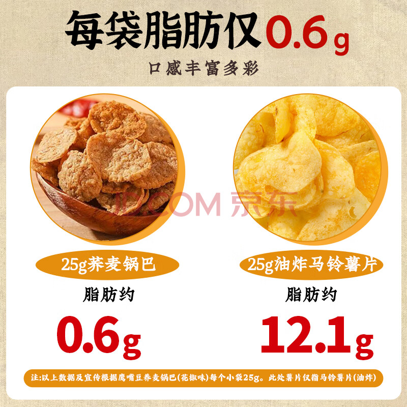 > 百宝库 荞麦锅巴低脂零食苦荞薯片非油炸无加蔗糖糖尿病人食品零食1.2斤