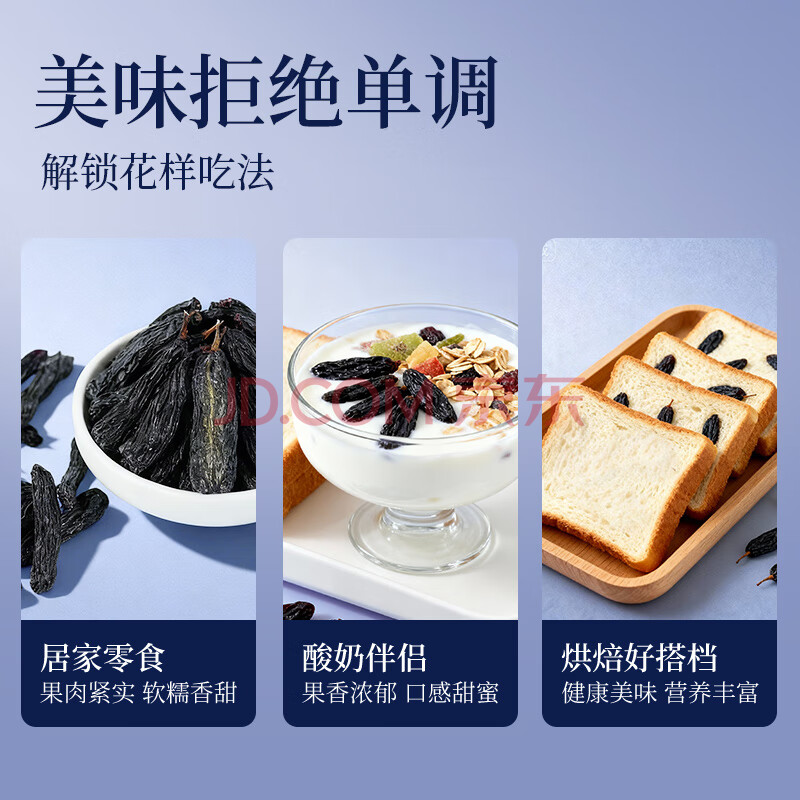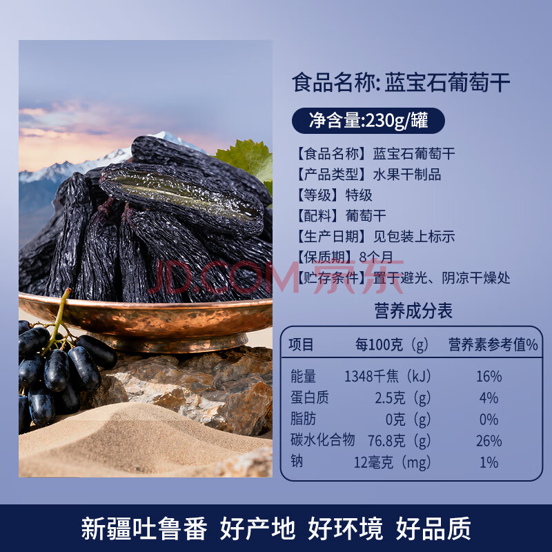 商品名称:楼兰蜜语新疆大个蓝宝石葡萄干230g免洗特产烘焙儿童黑手指下午茶零食蜜饯