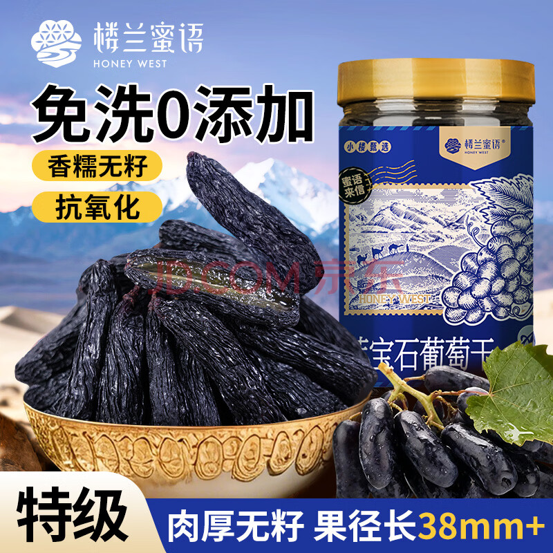楼兰蜜语新疆大个蓝宝石葡萄干230g免洗特产烘焙儿童黑手指下午茶零食蜜饯