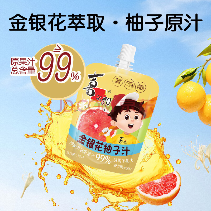商品名称:喜之郎金银花柚子汁110ml*11支原果汁≥99%复合果汁饮料 零食大礼箱