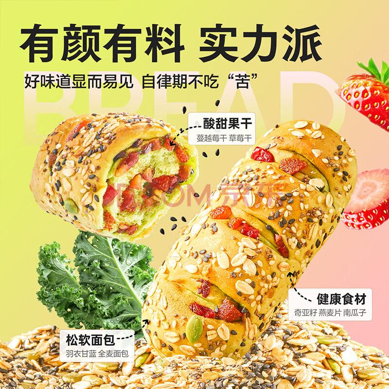 商品名称:良品铺子羽衣甘蓝全麦棒500g早餐面包健身轻食代餐吐司零食