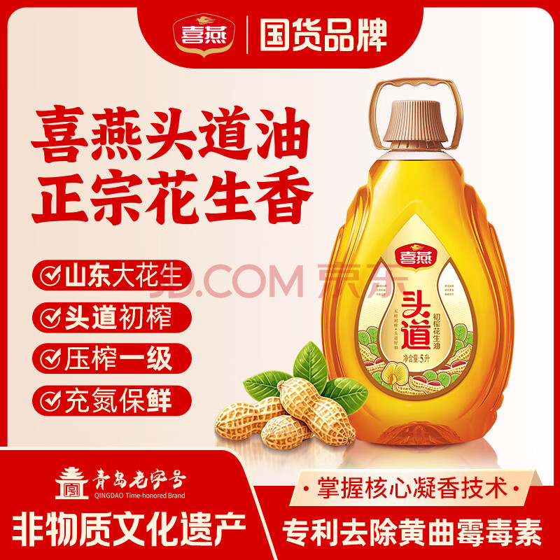 商品名称:喜燕头道初榨花生油物理压榨一级食用油5L山东产高端粮油节日送礼