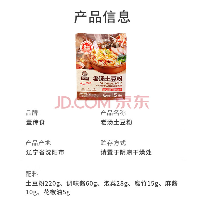 商品名称:壹传食 老汤土豆粉338g 方便速食米粉米线夜宵火锅
