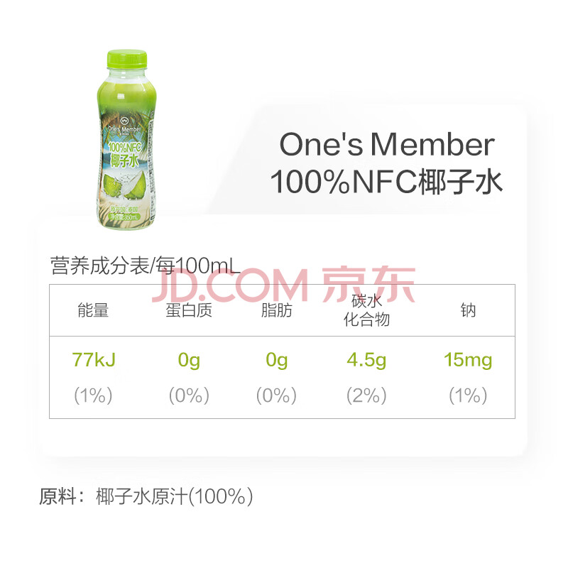 商品名称:1号会员店NFC椰子水天然电解质0脂果汁椰青椰汁椰树原汁饮料350ml*15整箱装