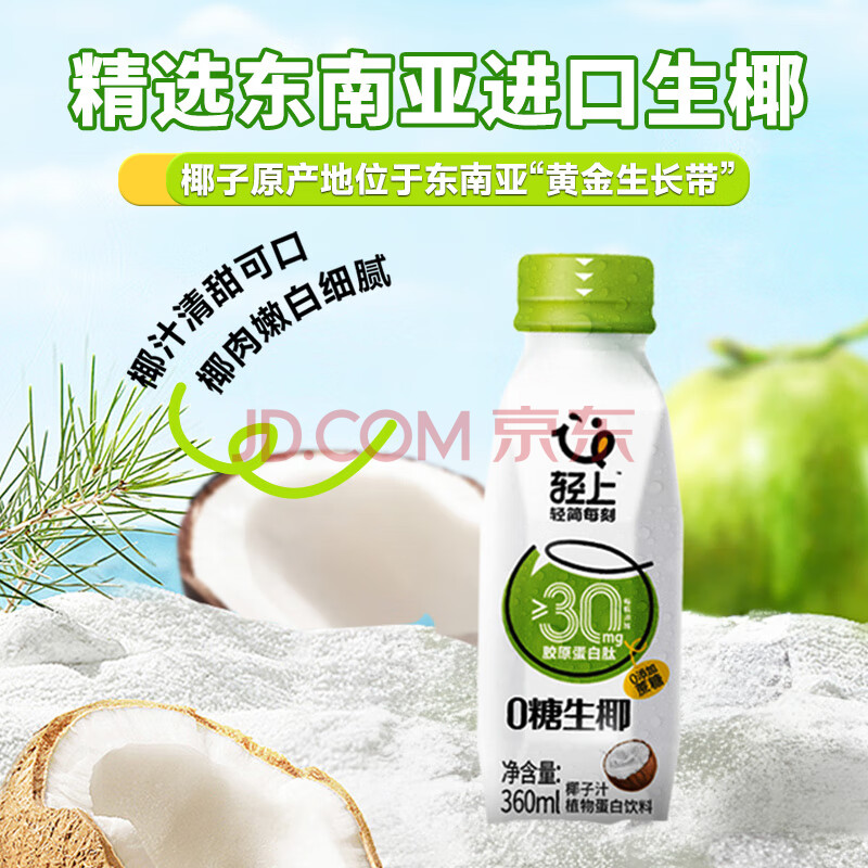 商品名称:轻上0糖生椰汁 植物蛋白椰子汁饮料360ml*10瓶整箱无糖减脂早餐0添加