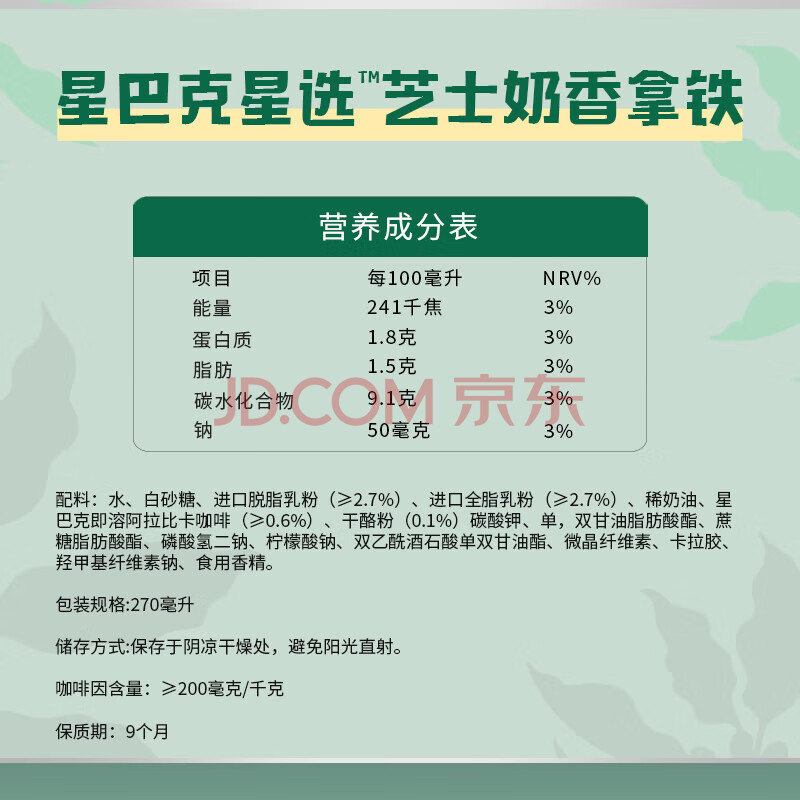 商品名称:星巴克星选芝士奶香拿铁270ml*5瓶 星巴克咖啡饮料即饮 新老包装随机发