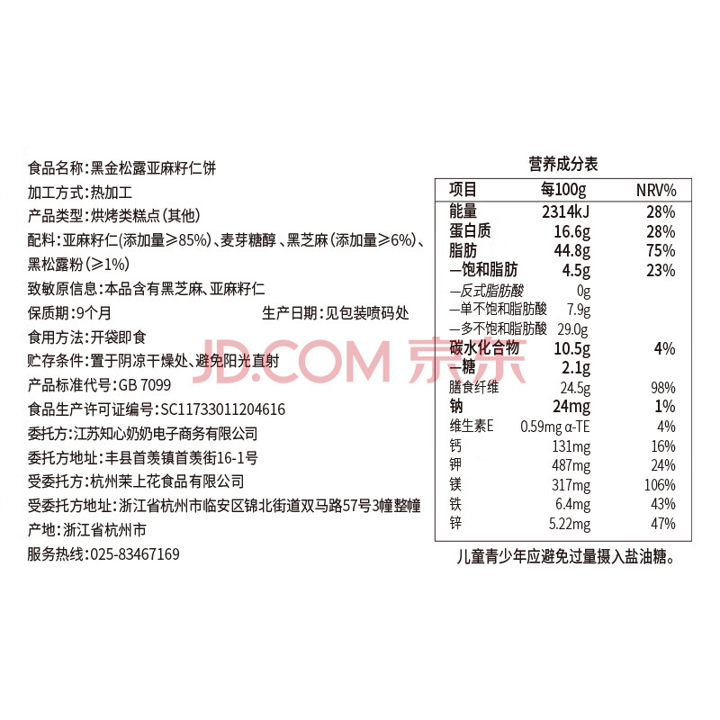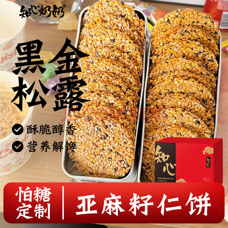商品名称:知心奶奶黑金松露亚麻籽仁饼薄脆饼干0低糖无糖精黑芝麻解馋零食食品128g