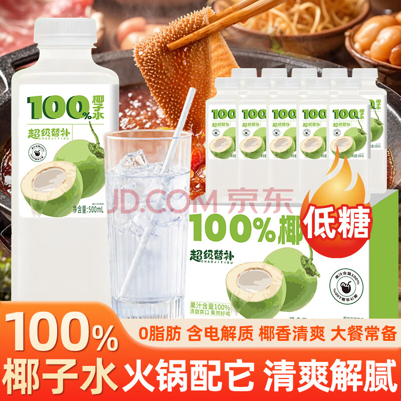 商品名称:超级替补 100%椰子水500ml*15瓶 含天然电解质椰青水孕妇健康NFC果汁饮料