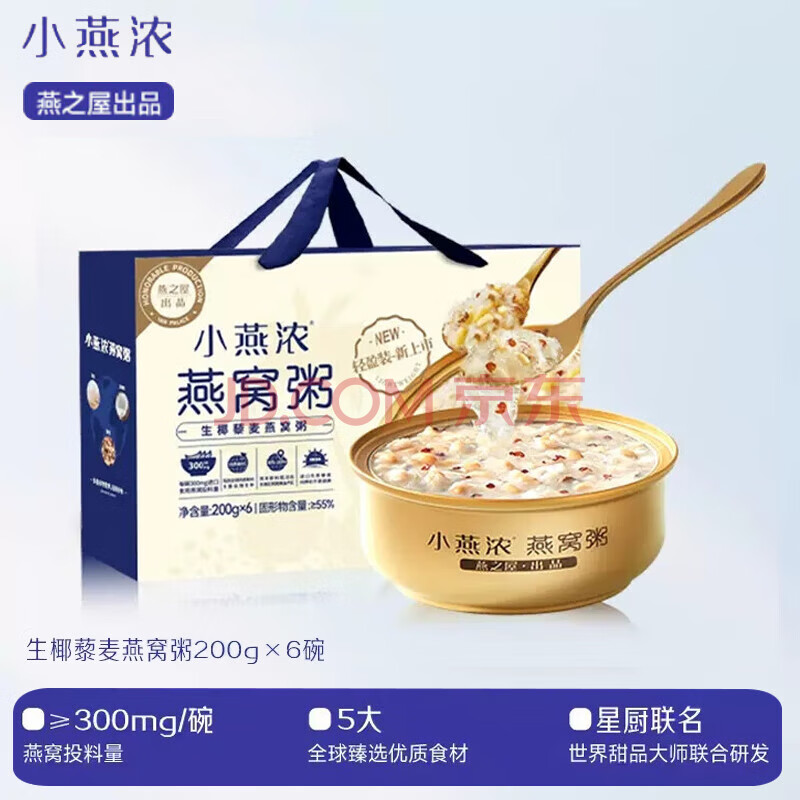 燕之屋 小燕浓燕窝粥 200g*6碗 【生椰藜麦】 早餐营养速食 女性滋补