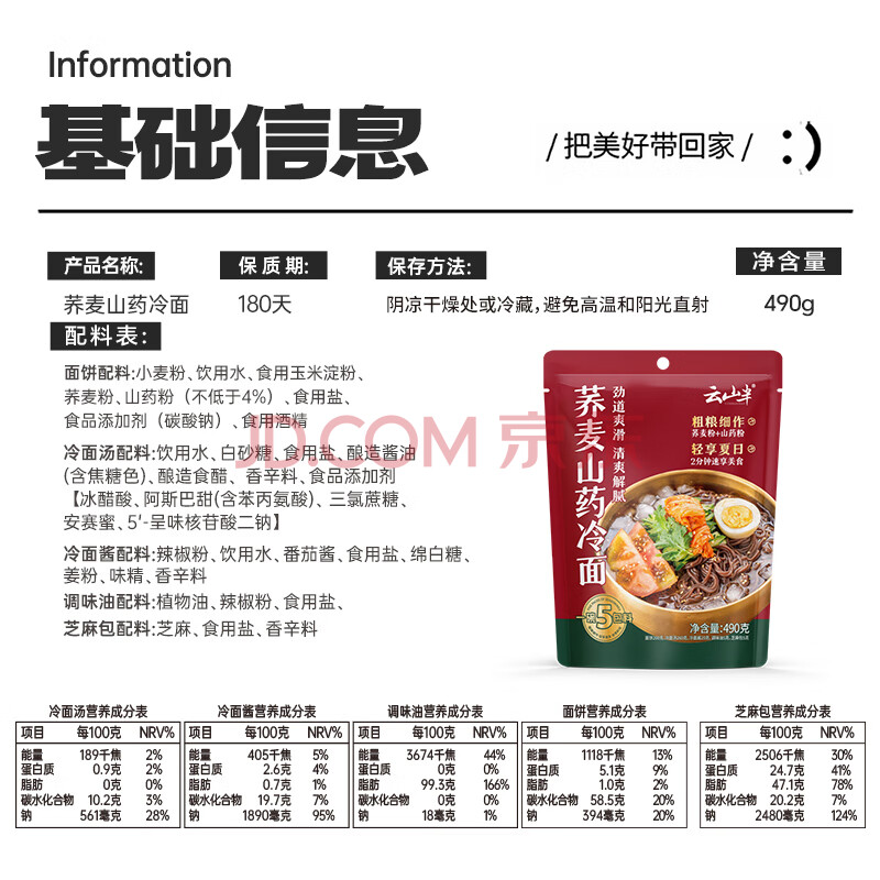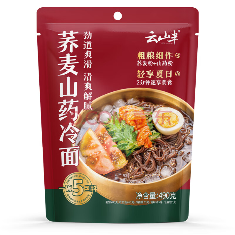 商品名称:云山半荞麦山药冷面490g 内含料包 东北冷面 代餐速食粗粮面条