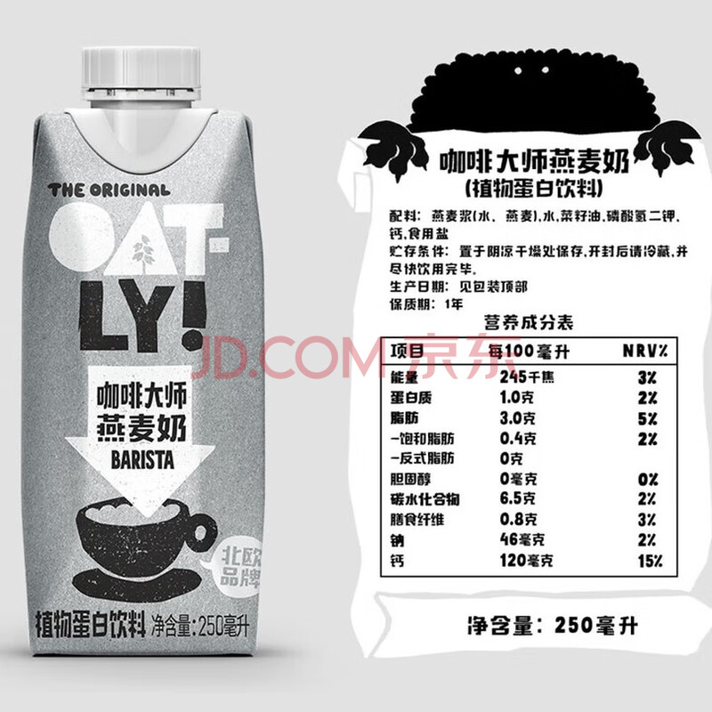 商品名称:OATLY咖啡大师燕麦奶 咖啡伴侣谷物植物蛋白饮料250ml*18 赠勺子
