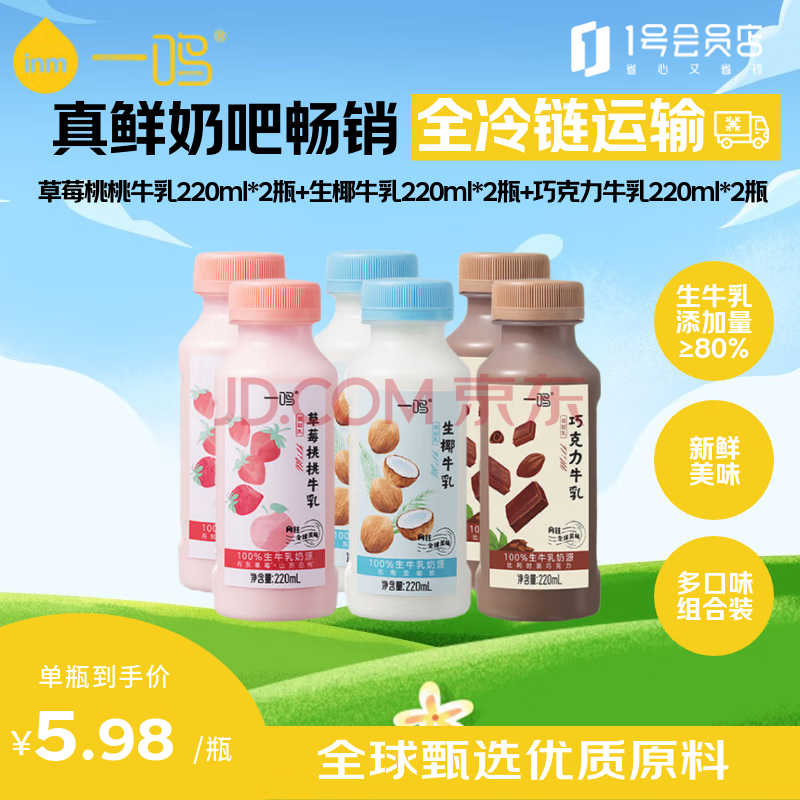 商品名称:一鸣真鲜奶吧生椰+草莓+巧克力生牛乳 220ml*6瓶 源头直发 包邮