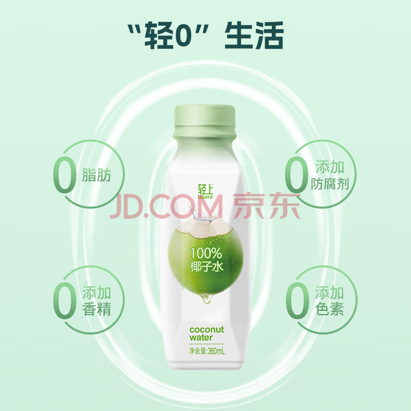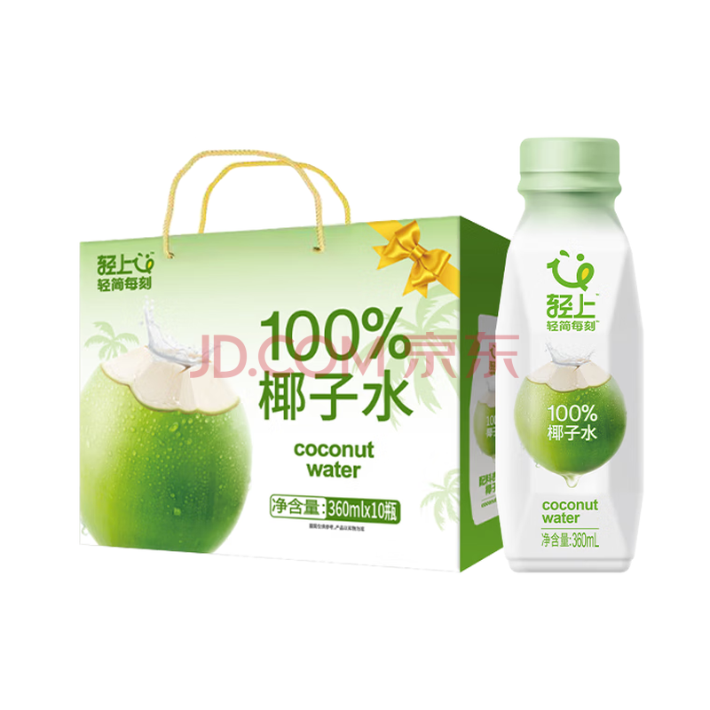 商品名称:轻上100%椰子水 椰汁椰青果汁饮料 360ml*10瓶整箱礼盒装