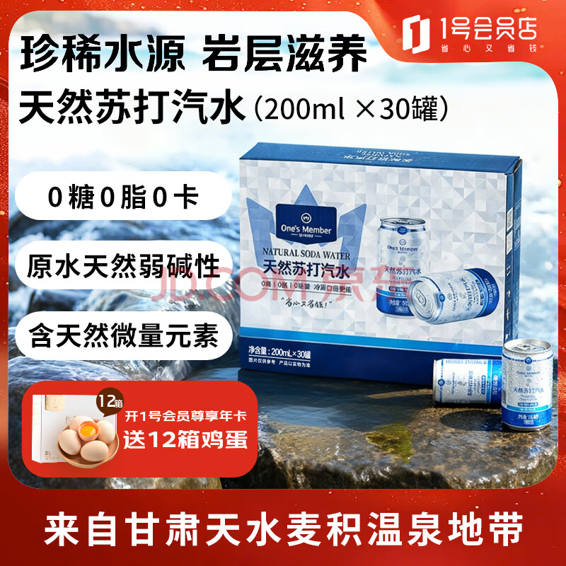 1号会员店天然苏打汽水 富含多种矿物质 200ml*30罐/箱