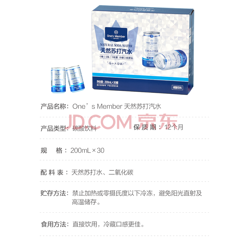 商品名称:1号会员店天然苏打汽水 富含多种矿物质 200ml*30罐/箱
