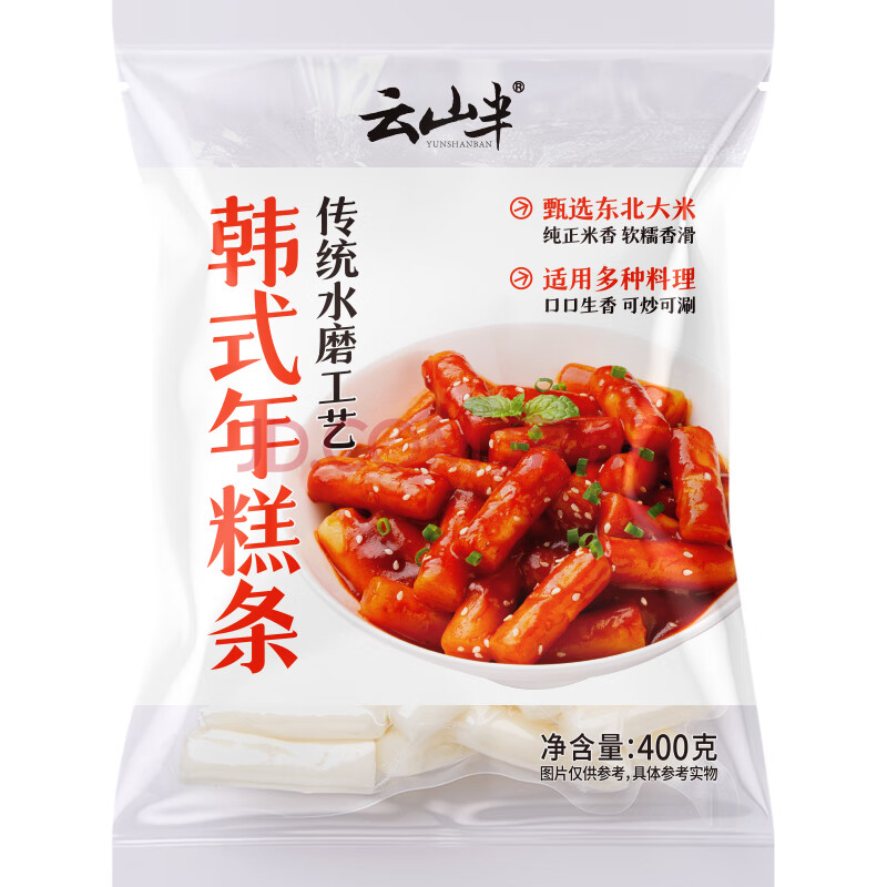 商品名称:云山半韩式年糕条400g 低脂肪火锅食材 精选大米特色小吃 方便速食