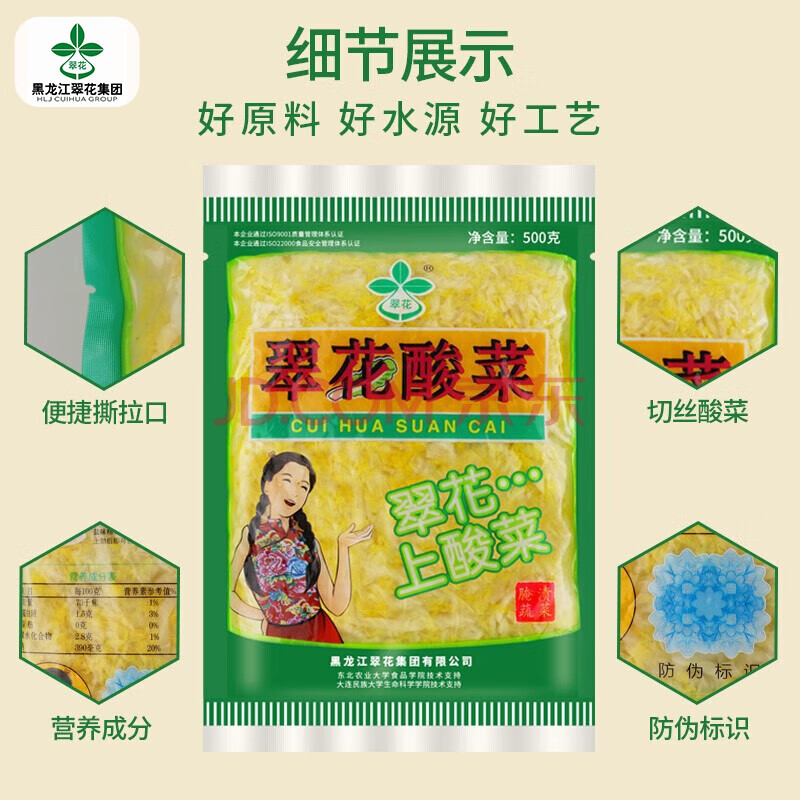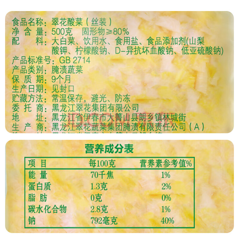 商品名称:翠花酸菜东北酸菜丝酸菜饺子馅500g*2袋