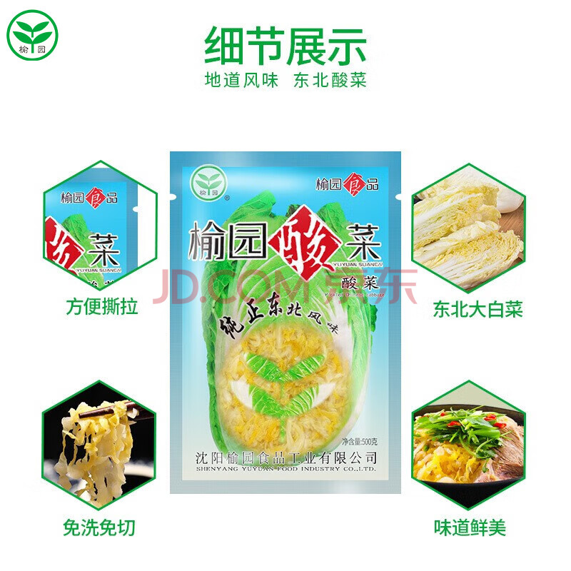 商品名称:榆园酸菜东北酸菜丝500g*2袋饺子馅料乳酸菌发酵