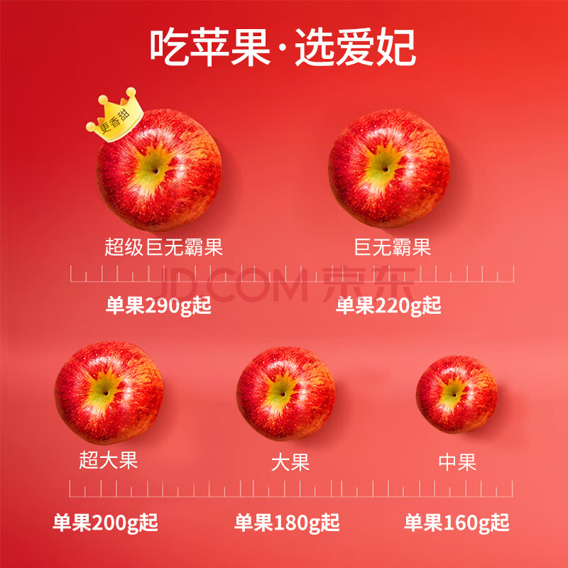 商品名称:爱妃 美国进口苹果18粒装 单果220g起巨无霸 水果礼盒 源头直发