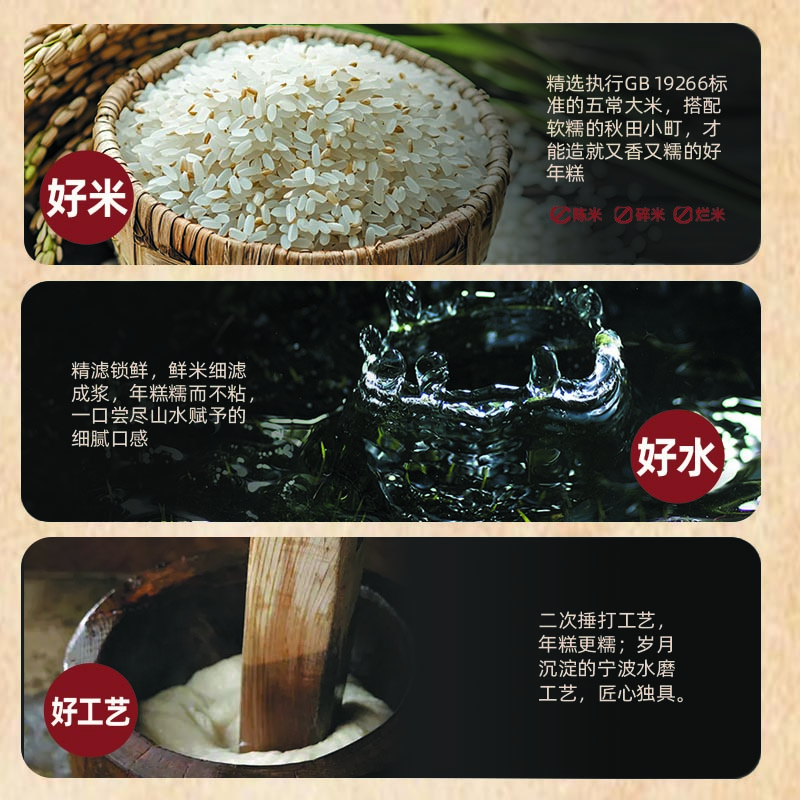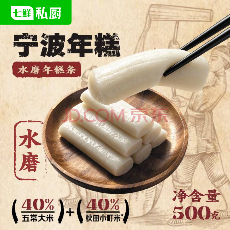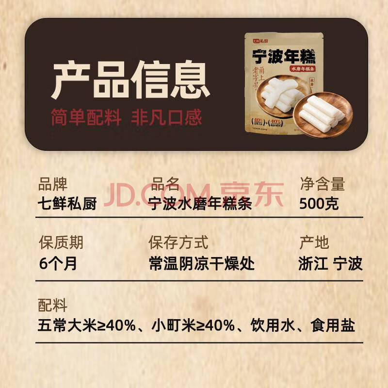 商品名称:七鲜私厨宁波水磨年糕条500g 25年五常大米主食半成品火锅食材早餐