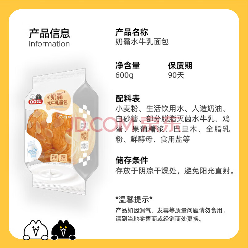 商品名称:口口妙水牛乳坚果手撕面包600g营养早餐吐司休闲零食品代餐下午茶糕点心