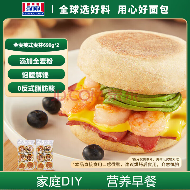 商品名称:曼可顿 全麦英式麦芬 690g*2 汉堡胚半成品儿童餐包 源头直发