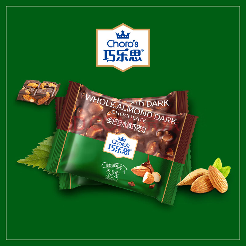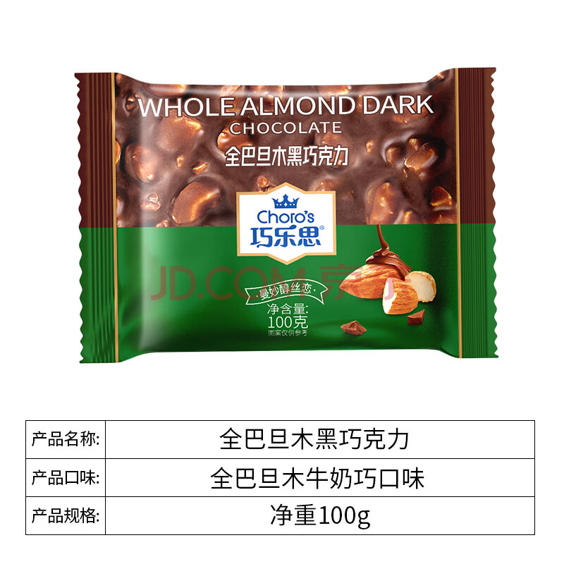 商品名称:巧乐思黑巧克力夹心板块100g 纯可可脂 整颗巴旦木果仁夹心整块生日礼物