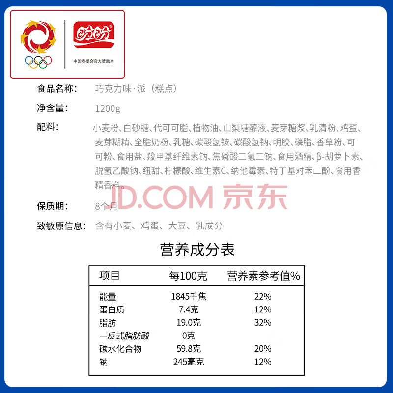 商品名称:盼盼可可香草味派 早餐夹心蛋黄派休闲零食代餐饼干 香草味 1200g/箱
