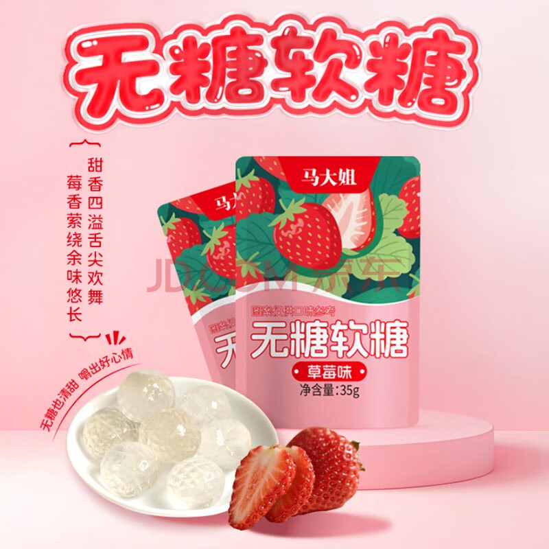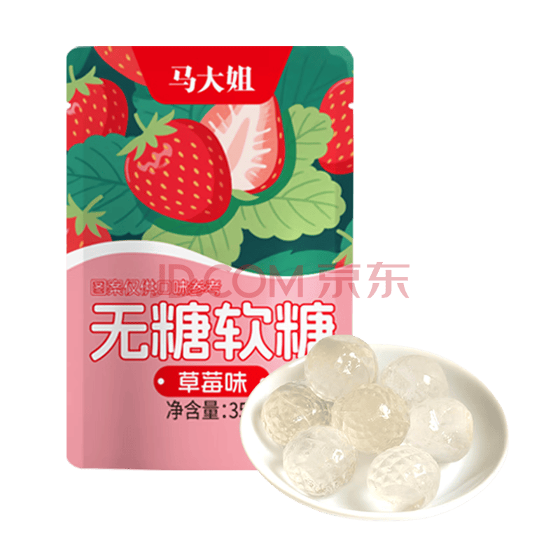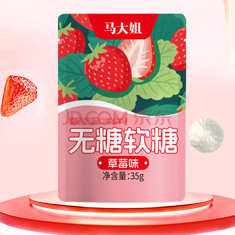 商品名称:马大姐 无糖软糖草莓味 35g/袋 水果味儿童糖果 休闲零食 前台招待