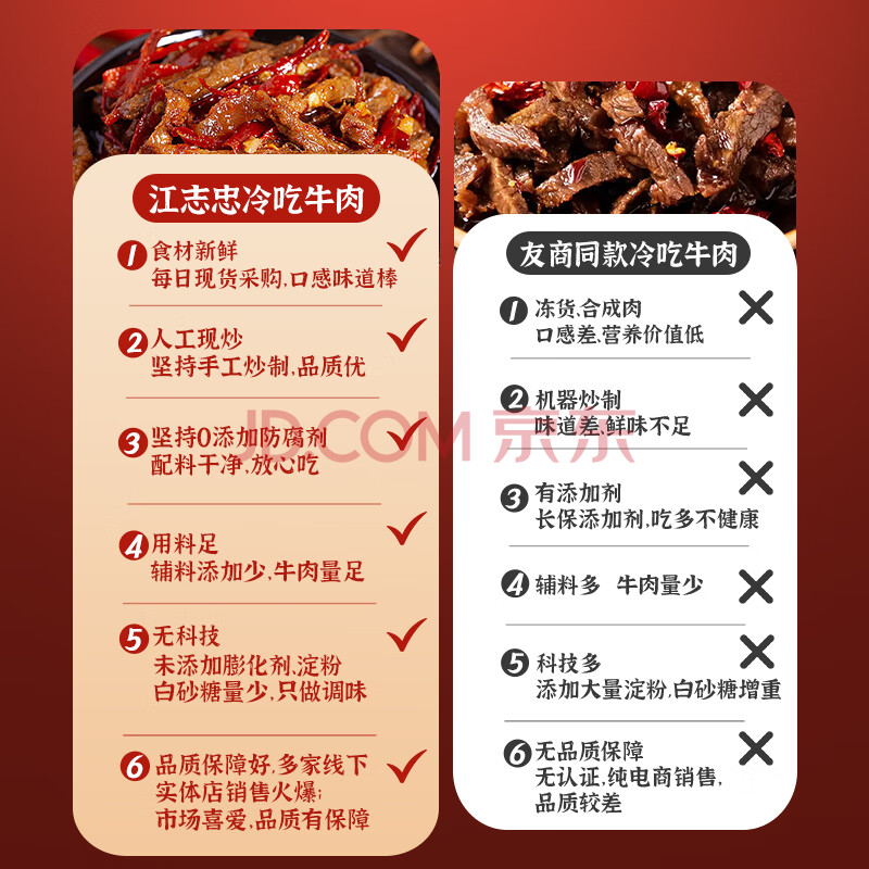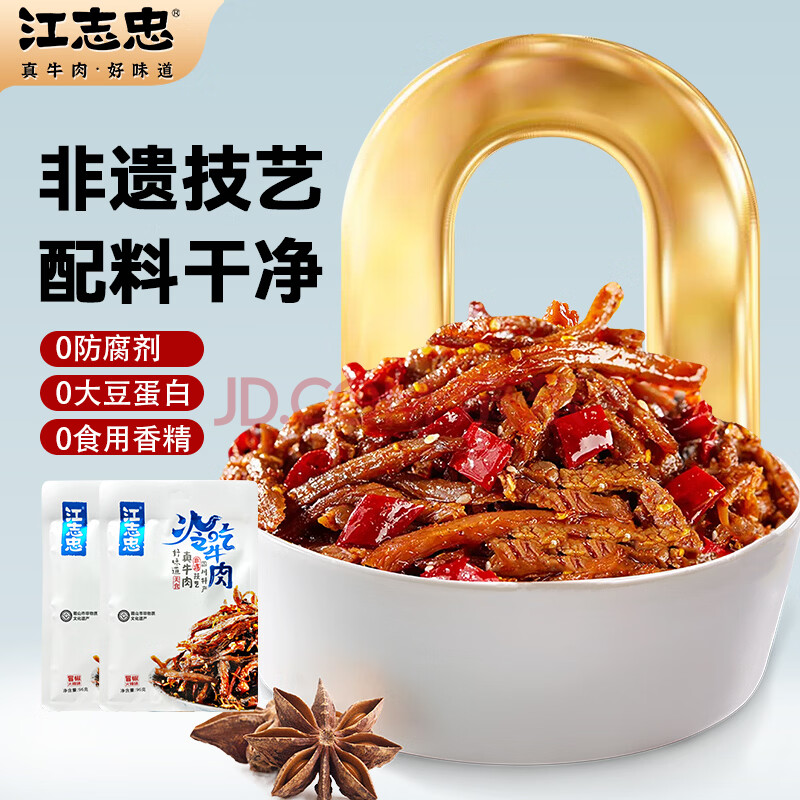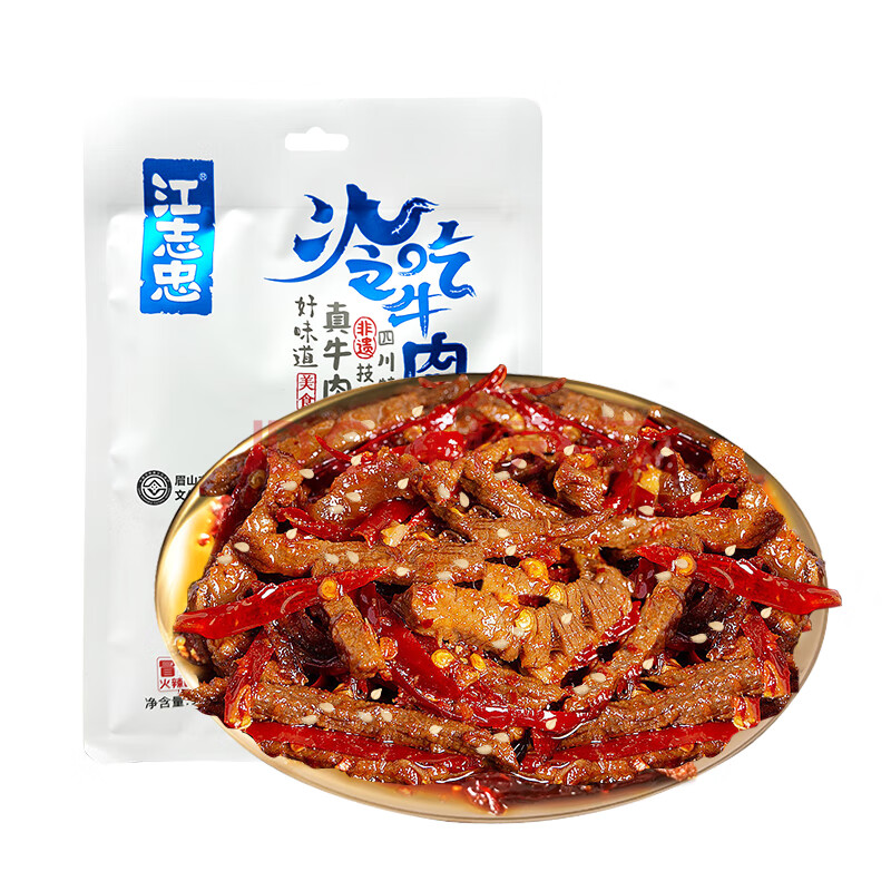 商品名称:江志忠冷吃牛肉零添加四川特产麻辣小吃卤味真空包装休闲小零食96g*2袋